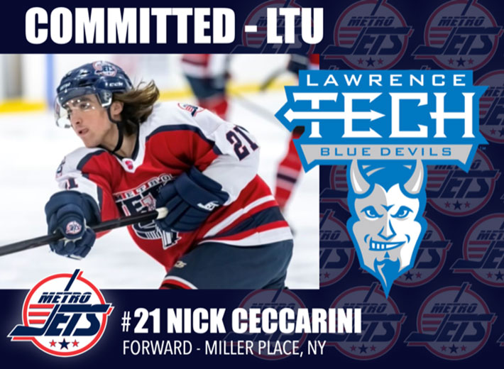 MOUNT CLEMENS, Mich. – New York native Nick Ceccarini has played the last four seasons for the Metro Jets, living away from home in the Detroit suburbs to play junior hockey in the USPHL.