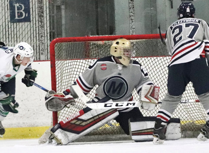 Connor Hilliker scored the lone MHC goal and Ethan Ryan (pictured front) turned aside 40 shots between the pipes.