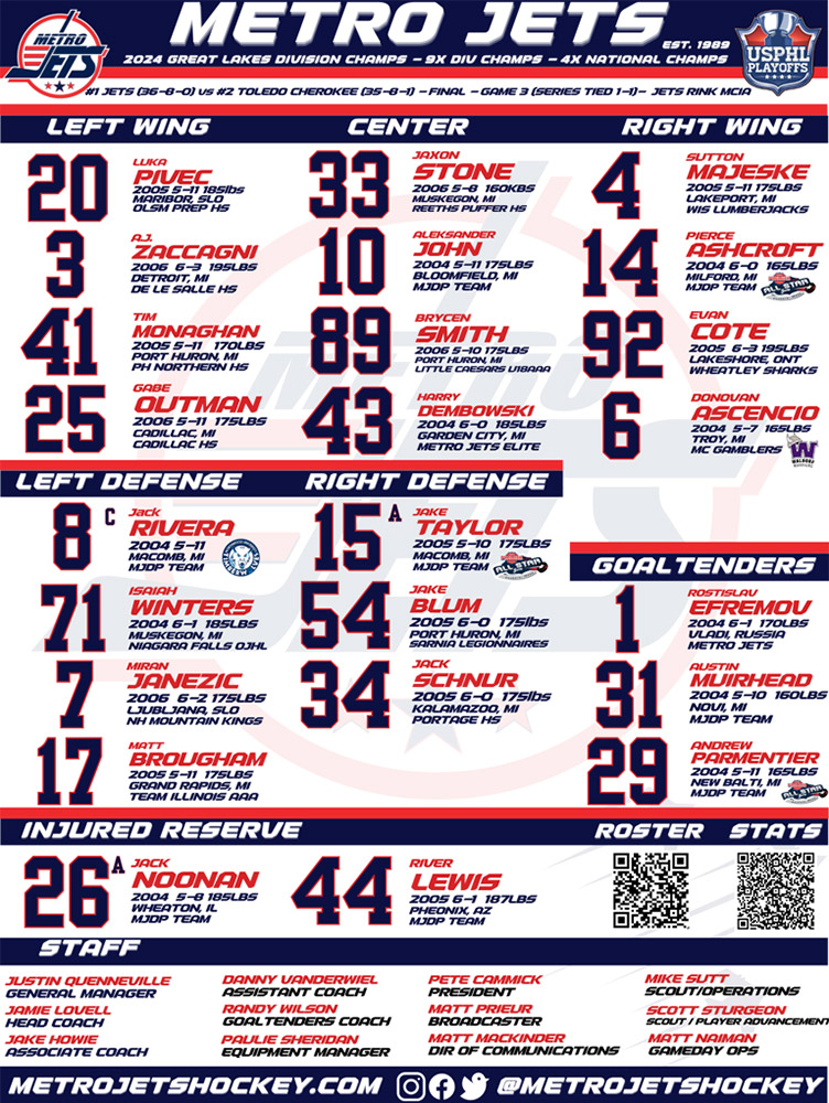 Roster/Stats/Standings Roster/Stats/Standings2024-25 Regular SeasonJETS RosterStatsStandings2024-25 Regular SeasonMJDP RosterStatsStandings2024-25 Regular SeasonELITE RosterStatsStandings2023-24 Regular SeasonJETS RosterStatsStandings2023-24 Regular SeasonMJDP RosterStatsStandings2023-24 Regular SeasonELITE RosterStatsStandings2022-23 Regular SeasonJETS RosterStatsStandings2022-23 Regular SeasonMJDP RosterStatsStandings2021-22 Regular SeasonJETS RosterStatsStandings2021-22 Regular SeasonMJDP RosterStatsStandings2020-21 Regular SeasonJETS RosterStatsStandings2020-21 Regular SeasonMJDP RosterStatsStandings2020-21 Regular SeasonMHC RosterStatsStandings2019-20 Regular SeasonJETS RosterStatsStandings2019-20 Regular SeasonMJDP RosterStatsStandings2018-19 Regular SeasonJETS RosterStatsStandings2018-19 Regular SeasonMJDP RosterStatsStandings2017-18 Regular SeasonRosterStatsStandings2016-17 Regular SeasonRosterStatsStandings2015-16 Regular SeasonRosterStatsStandings2014-15 Regular SeasonRosterStatsStandings