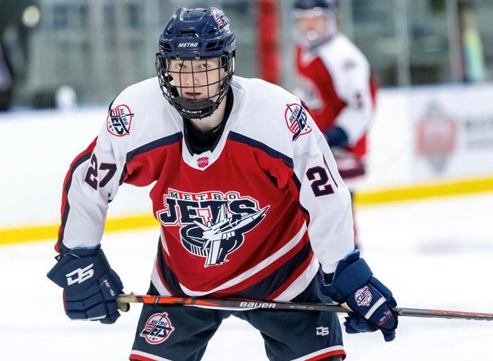 MOUNT CLEMENS, Mich. – Anders Grongstad came to the Metro Jets during the 2020-21 season and quickly found a spot on the top forward lines.